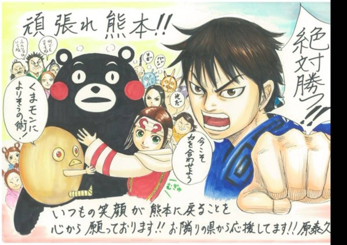 キングダム の原泰久が被災地応援イラストを公開 信 絶対勝つ 河了貂 くまモンによりそうの術 16年4月22日 エキサイトニュース